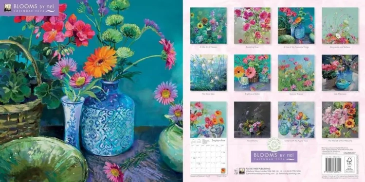 Kalendarz ścienny o wymiarach 300 300 mm, zatytułowany Blooms by Nel Whatmore Wall Calendar 2026 (Art Calendar), wydany przez Flame Tree Publishing. Motywem przewodnim są nastrojowe, pełne głębi i koloru kwiatowe kompozycje Nel Whatmore artystki znanej z malarskiej wrażliwości, miękkiego światła i harmonijnych zestawień barw. Jej prace przenoszą w świat natury uchwyconej z wyjątkową delikatnością, gdzie płatki, liście i abstrakcyjne detale tworzą poetyckie, niemal medytacyjne obrazy.