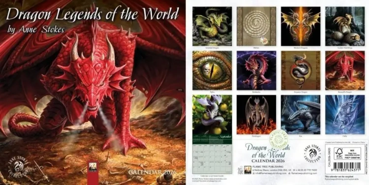 Ten ścienny kalendarz zabiera nas w krainę baśni, magii i pradawnych legend - każda strona to nowe, fascynujące spojrzenie na świat smoków, tajemniczych lasów i fantastycznych krajobrazów. Ilustracje autorstwa Anne Stokes wyróżniają się intensywną wyobraźnią, bogactwem detali i klimatem, który łączy romantyzm ze złowieszczą mocą - od mistycznych lasów po majestatyczne, ziejące ogniem smoki. Pod grafikami znajdują się krótkie opisy, które przybliżają legendy, inspiracje i symbolikę przedstawionych scen - dzięki temu każda ilustracja nabiera głębszego znaczenia. Czytelne kalendarium z podglądem poprzedniego i następnego miesiąca sprawia, że kalendarz jest nie tylko ozdobą ściany, ale też użytecznym narzędziem do planowania. Wydrukowany na papierze z certyfikatem FSC i zapakowany bez plastiku, łączy w sobie ducha fantastyki, estetykę i troskę o środowisko - idealny jako dekoracja dla tych, którzy kochają wyobraźnię, magię i niezwykłe opowieści.