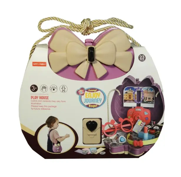 Zestaw piękności w torebce pozwoli dziewczynkom naśladować dorosłą osobę i poznać tajniki makijażu. W zestawie znajdują się m.in.: okulary, aparat fotograficzny, opaska, szminka, flakoniki perfum oraz biżuteria. Całość spakowana w torebkę, którą po opróżnieniu, dzieci mogą nosić samodzielnie. Zabawka dla dzieci od 3 roku życia. Podane wymiary są wymiarami opakowania.