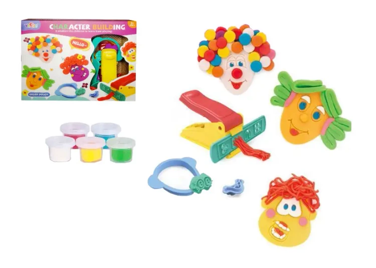 Masa plastyczna. Zestaw do tworzenia ludzkich twarzy. Zainspiruje niejedno dziecko i pobudzi jego wyobraźnię. W zestawie m.in.: 5 kolorów masy, formy i maszynka do wyciskania kształtów. Po zakończonej zabawie, masę plastyczną należy chować do kubeczków, aby uniknąć jej wyschnięcia (a dalej kruszenia). Zabawka przeznaczona dla dzieci powyżej 3 lat.