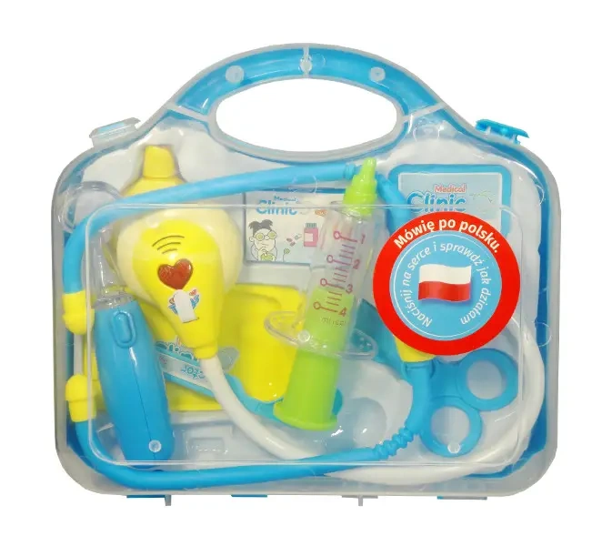 Zabawka z odgłosami bicia serca oraz polskojęzyczną konwersacją lekarz-pacjent. Stetoskop świeci, wydaje odgłosy bicia serca oraz odtwarza polskojęzyczną konwersację pacjent-lekarz. Za pomocą wypowiedzi dziecka oraz lekarza przedstawiona jest pełna wizyta w gabinecie lekarskim, zaczynając od badania i diagnozy, a kończąc na zleceniach. W zestawie m.in. słuchawki lekarskie, strzykawka, karta pacjenta, leki, lusterko, nożyczki. Lusterko świeci się światłem. Zabawka zapakowana w plastikową walizkę