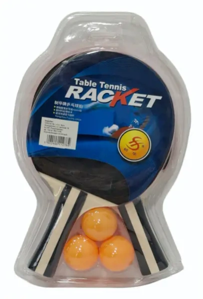 Komplet patelet do gry w ping - ponga. Do zestawu dołączone są 3 piłeczki. Wymiar paletek: 26x15 cm.