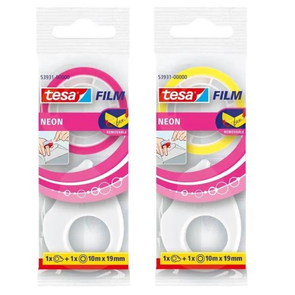 Taśma biurowa Tesa neon 10mx19mm +mini dozownik