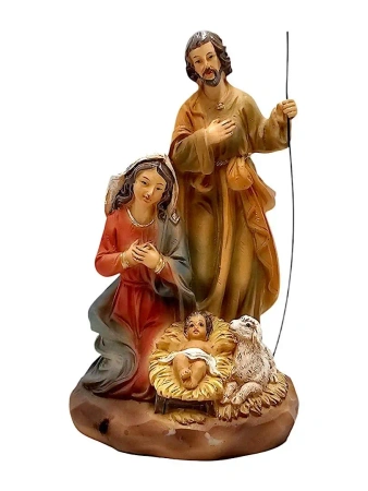 Tradycyjna Szopka Bożonarodzeniowa "Święta Rodzina i Owieczka" (12 cm)