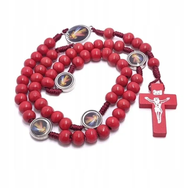 Drewniany Różaniec Jezu Ufam Tobie - Czerwony Różaniec z Okrągłymi Koralikami.
