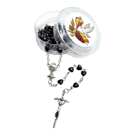 Różaniec komunijny czarny serduszko z pudełkiem - Art Sacrum