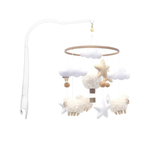 Starannie wykonane z filcu i puszystego wypełnienia, baranki i chmurki zachwycają miękkością i subtelnym wyglądem. Maskotki wyglądają wyjątkowo przytulnie i lekko kołyszą się nad łóżeczkiem, wprowadzając do pokoju dziecka atmosferę spokoju i ciepła.