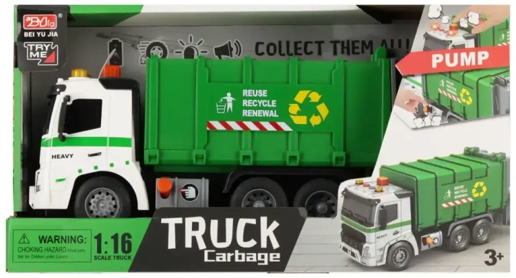 Zalety produktu ciężarówka posiada funkcję pull back, dzięki czemu po pchnięciu pojazdu do przodu kontynuuję jazdę samodzielnie, posiada efekty dźwiękowe oraz świetlne- klakson, odgłos wysypywania śmieci, żółte światełka na dachu, posiada ruchome elementy- podnoszoną klapę, obracany wirnik. Śmieciarka MEGA CREATIVE to doskonały atrybut podczas próby nauczenia swoich Pociech zasad segregacji odpadów oraz dbania o środowisko. W trakcie zabawy ulubionym samochodem, dziecko posiądzie niezbędną dla naszej Planety wiedzę Zawartość zestawu Śmieciarka. Zabawka wykonana z plastiku. Wymiary/waga/baterie wymiary produktu dł. x wys. x gł. cm 27x12x9, wymiary opakowania dł. x wys. x gł. cm 32x18x13, waga produktu bez opakowania kg 0,38 kg, waga produktu w opakowaniu kg 0,56 kg, wymaga zasilania bateriami 3 x AG13- załączono do zestawu. Zabawka przeznaczona dla dzieci w wieku 3 . Pakowana w karton z otwartym okienkiem. W kartonie zbiorczym po 18 szt.