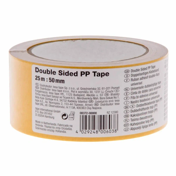 Uniwersalna taśma dwustronna tesa idealna do mocowania wykładzin podłogowych oraz mocowania na stałe różnych materiałów.