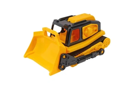 Wszechstronność i moc buldożera zapewniają gąsienice. Zabawka nie będzie się ślizgać po powierzchni, ponieważ gąsienice mają głębokie ryflowanie i są wykonane z miękkiego plastiku. Kabina jest duża, przestronna i posiada siedzenie dla operatora. Obszerna komora silnika z tyłu podkreśla ogromną siłę tej maszyny budowlanej.