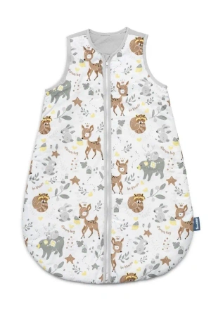 Śpiworek do spania będzie służył dzieciom już od pierwszych dni życia (0-9 miesięcy) zapewniając im ciepło i bezpieczeństwo. Wykonany jest z miękkiej bawełny wypełnionej otuliną. Nie zawiera twardych elementów, które podrażniają skórę dziecka. Śpiworek wyposażony jest w dwustronny zamek błyskawiczny, zabezpieczony przy szyi, pozwalający na zmianę pieluchy bez wyciągania dziecka ze śpiworka. Pasuje do innych produktów naszej marki.