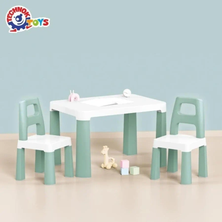 Stół dziecięcy zielony z dwoma krzesełkami - Technok