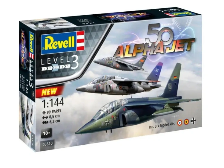 Zestaw upominkowy z okazji 50. rocznicy samolotu szkolno-treningowego Alpha Jet zawiera trzy modele w skali 1:144. Zestaw składa się ze 126 części. Alpha Jet to zwinny i bardzo zwrotny samolot poddźwiękowy, używany zarówno jako samolot treningowy, jak i w roli myśliwca-bombowca. Zestaw upominkowy zawiera wszystko, co potrzebne do łatwego montażu.