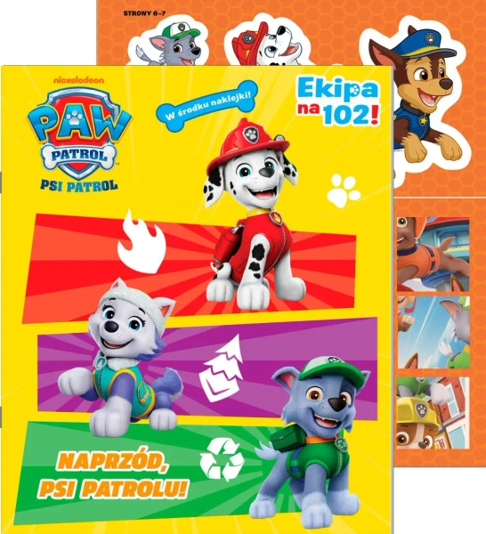 Psi Patrol. Ekipa na 102! zawiera zagadki, łamigłówki oraz kolorowanki z ulubionymi bohaterami w roli głównej. W środku również kolorowe naklejki z dzielnymi pieskami! Rezolutne szczenięta Marshall, Rubble, Chase, Rocky, Zuma i Skye oraz dziesięcioletni chłopiec Ryder nigdy nie odmówią pomocy potrzebującym. Pomagaj pieskom w ich bohaterskiej misji poprzez rozwiązywanie różnorodnych zadań.