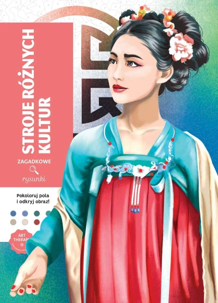 Przenieś się w barwny świat tradycji i zwyczajów! "Stroje różnych kultur" to niezwykły album do kolorowania, w którym odkryjesz bogactwo wzorów i tkanin - od koreańskich hanboków, przez afrykańskie pagne, aż po indyjskie sari i japońskie kimona. Każdy rysunek został oznaczony numerami, dzięki czemu łatwo wypełnisz go barwami. Wystarczy sięgnąć po kredki lub flamastry, by odsłonić 100 wyjątkowych ilustracji pełnych piękna i egzotyki.