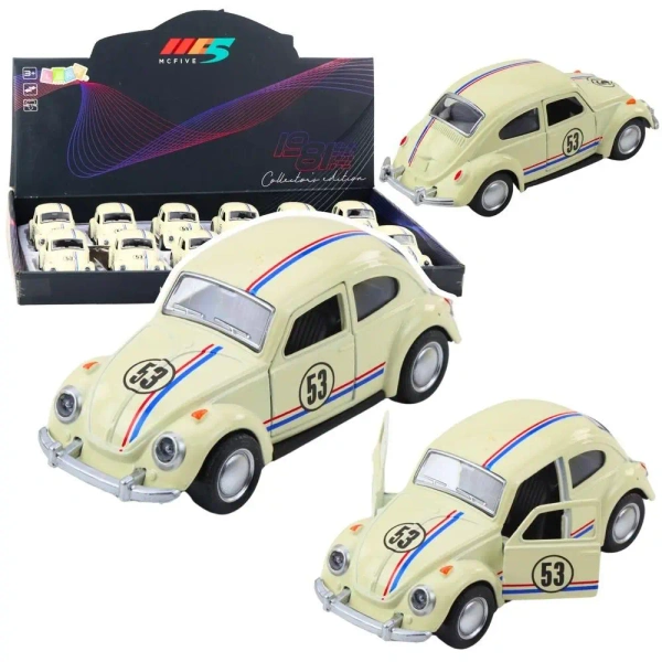 Metalowy samochód typu garbus w skali 1:32 to wyjątkowy model inspirowany klasyczną motoryzacją, który zachwyca zarówno swoim wyglądem, jak i funkcjonalnością. Zabawka została wykonana z wysokiej jakości metalu, co gwarantuje trwałość i solidność podczas codziennego użytkowania. Beżowa karoseria nadaje pojazdowi eleganckiego, kultowego charakteru, a starannie odwzorowane detale przyciągają uwagę zarówno dzieci, jak i miłośników klasycznych modeli samochodów.