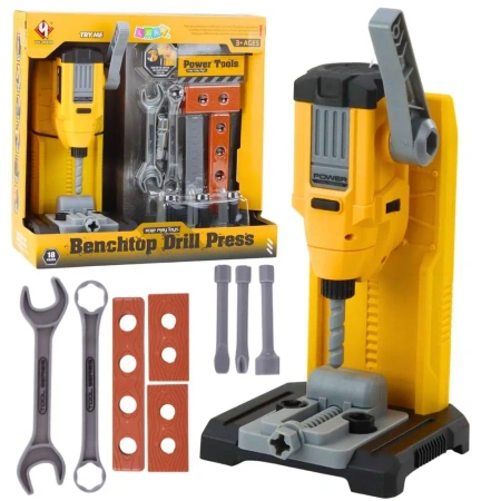 Centralnym elementem zestawu jest wiertarka stołowa z regulacją wysokości oraz ruchomymi elementami roboczymi. Podczas uruchomienia zabawka wydaje dźwięki oraz emituje efekty świetlne, co zwiększa realizm zabawy i angażuje dziecko na dłużej. Różnorodne akcesoria umożliwiają symulowanie skręcania, wiercenia i montażu, rozwijając zdolności manualne, koordynację ręka oko oraz kreatywność.