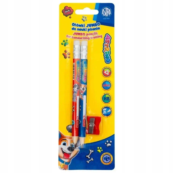 ASTRA ASTRINO 2 OŁÓWKI HB z gumką DO NAUKI PISANIA +temperówka, blister