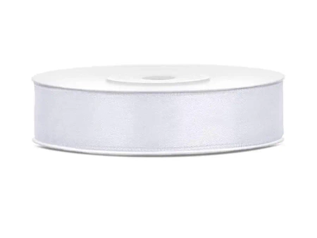 Tasiemka satynowa w kolorze białym, szerokość 12 milimetrów, długość 25 metrów.(1 szt. / 25 mb.)