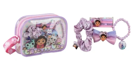 Licencjonowany zestaw akcesoriów do włosów - Koci Domek Gabi to urocza propozycja dla małych fanek tej popularnej bajki. Całość zapakowana jest w praktyczną, przezroczystą kosmetyczkę, która świetnie sprawdzi się do przechowywania akcesoriów lub drobiazgów i pozwala z łatwością zobaczyć całą zawartość zestawu.