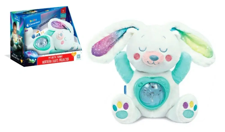 Mięciutka przytulanka-projektor wyświetlająca zaorzę polarną. Króliczek polarny to doskonały towarzysz w podróżach po świecie marzeń.