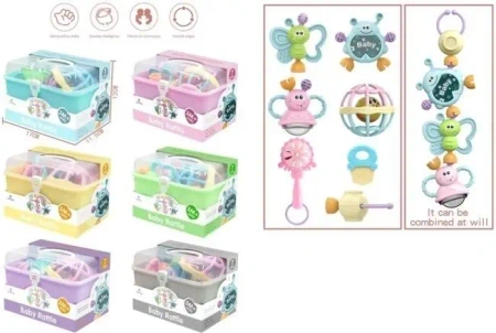Wieloelementowy zestaw grzechotek i gryzaków dla niemowląt został zaprojektowany z myślą o wszechstronnym rozwoju najmłodszych dzieci od 3 miesiąca życia. W skład jednego kompletu wchodzi 7 unikalnych zabawek, w tym grzechotki w kształcie uroczych zwierzątek, klasyczna grzechotka z kółeczkiem, piłeczka z dzwonkiem oraz gryzaki przynoszące ulgę podczas ząbkowania.