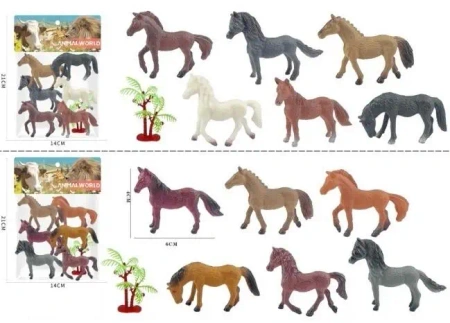 Przenieś się w świat pełen przygód dzięki zestawowi figurek z serii Animal World. Kolekcja koni to starannie dobrany komplet sześciu zwierząt, które różnią się od siebie kolorystyką oraz posturą. Wśród figurek znajdziemy konie o maści kasztanowatej, karej, siwej oraz gniadej, co czyni zabawę wyjątkowo realistyczną. Każdy koń został wykonany z dbałością o detale, takie jak rzeźba grzywy i ogona czy dynamiczne ułożenie sylwetki. Do zestawu dołączone jest ozdobne drzewko, które stanowi świetny element dekoracyjny podczas budowania makiet lub domowych stajni. Figurki są lekkie i poręczne, dzięki czemu świetnie sprawdzą się zarówno podczas zabawy w domu, jak i w podróży. To doskonały wybór dla kolekcjonerów i dzieci, które chcą poszerzyć swoją wiedzę o gatunkach zwierząt. Cena dotyczy jednego zestawu.