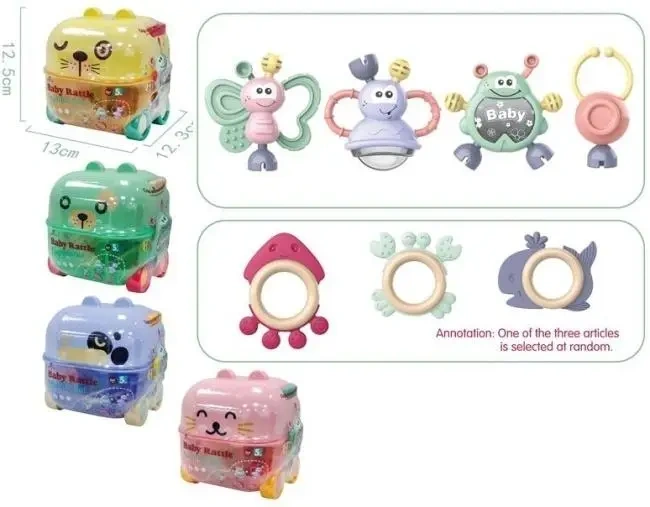 Zestaw grzechotek i gryzaków to idealny wybór na pierwszy prezent dla niemowlęcia, łączący zabawę z dbałością o prawidłowy rozwój. Całość została zapakowana w urocze pudełko z uchwytem, które przypomina przyjazne zwierzątko i posiada ruchome kółka, dzięki czemu samo w sobie może służyć jako zabawka do prowadzenia. Wewnątrz walizki znajduje się pięć starannie dobranych elementów, w tym grzechotki o fantazyjnych kształtach owadów i zwierzątek oraz miękkie gryzaki, które przynoszą ulgę podczas bolesnego ząbkowania. Różnorodne wypustki i tekstury zachęcają dziecko do ćwiczenia chwytu oraz koordynacji ręka oko. Zabawki wykonane są z bezpiecznych materiałów, łatwych do utrzymania w czystości. Produkt wysyłany jest w jednym z dostępnych kolorów, a podana cena dotyczy zakupu jednej sztuki zestawu. W przypadku zamówień hurtowych zabawki pakowane są w kartony zbiorcze po 12 sztuk.
