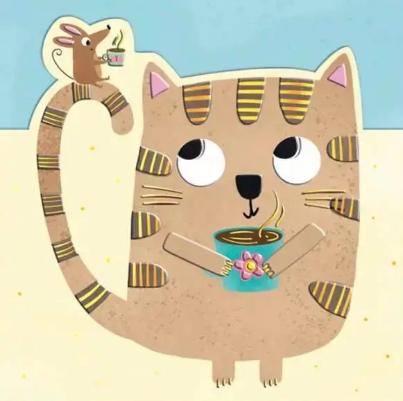 Karnet KW wycinany Urodziny - Kot z myszką