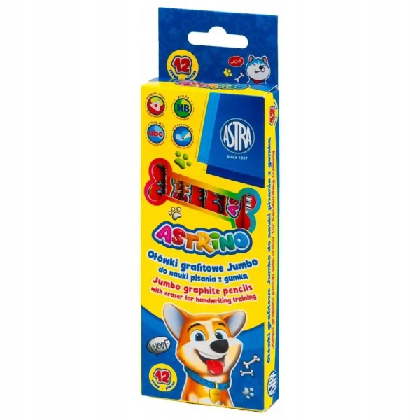 ASTRA Ołówek ASTRINO HB z gumką DO NAUKI PISANIA Jumbo TRÓJKĄTNY 2 sztuki