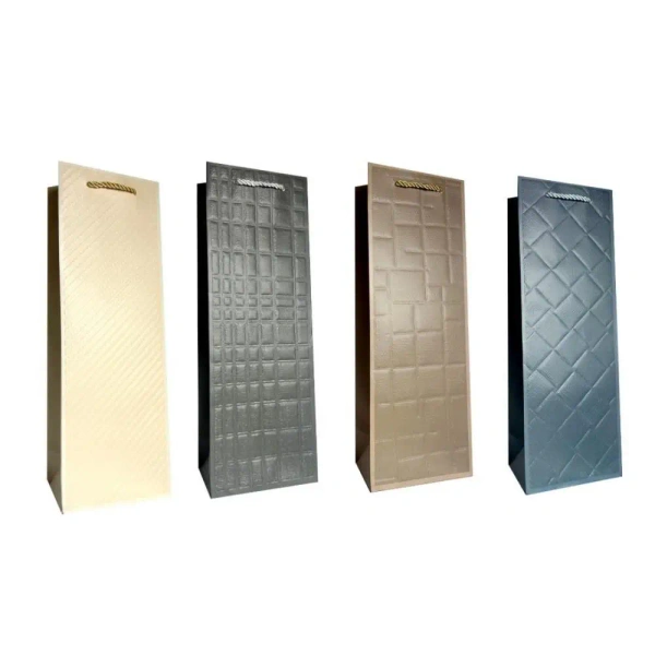 Elegancka papierowa torebka prezentowa na wino wykonana z grubszego papieru o gramaturze 210 g, co zapewnia jej większą trwałość i odporność na obciążenie. Wyposażona w elegancki sznurek, który zapewnia wygodny uchwyt i estetyczne wykończenie.