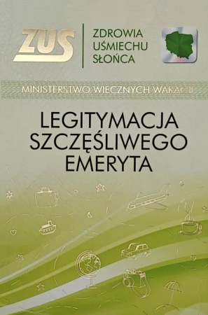 Zabawny karnet JCX na Emeryturę w formie przypominającą legitymację ZUS, zawiera zabawne życzenia.