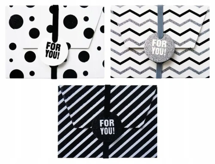 Pudełka na karty podarunkowe biało-czarne 3szt