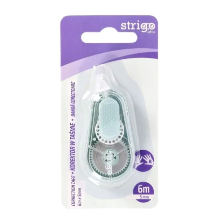 Korektor taśmie, w przezroczystej, ergonomicznej obudowie umożliwiającej kontrole zużycia taśmy. Wyjątkowo odporna taśma nie rozrywa się ani nie pęka. Korektor szybko schnie oraz nadaje się do wszystkich rodzajów papieru. Szerokość taśmy: 5mm, długoś taśmy: 6m. Dostępny w czterech kolorach: zielony, żółty, niebieski, różowy.