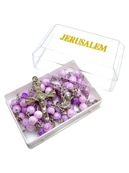 Różaniec jerozolimski liliowy w pudełku - Art Sacrum