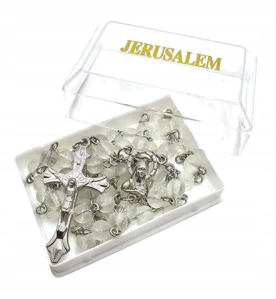 Różaniec jerozolimski bezbarwny w pudełku - Art Sacrum