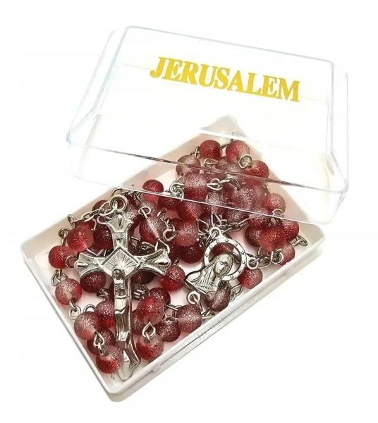 Różaniec jerozolimski biało/czerwony w pudełku - Art Sacrum