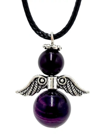 Wisiorek aniołek na rzemyku ametyst fiolet - Art Sacrum