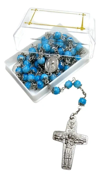 Różaniec niebieski w pudełku ze świętymi - Art Sacrum