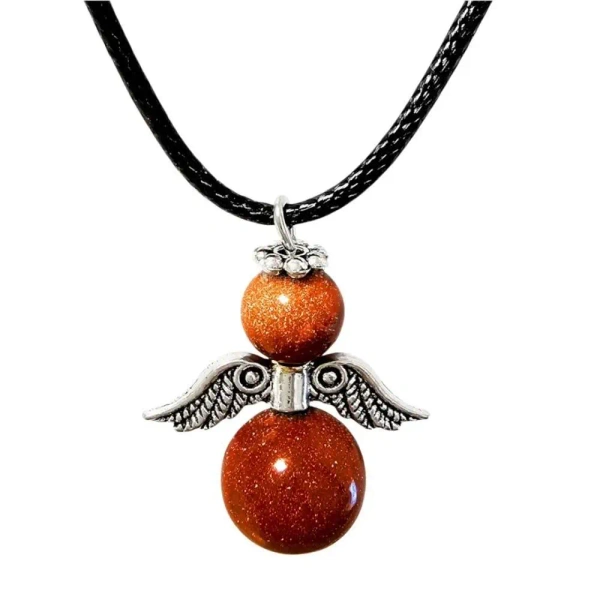 Wisiorek Aniołek z Naturalnych Kamieni na Woskowanym Sznurku - Skrzydła i Aureolka, 21x23 mm.