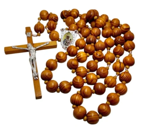 Duży Różaniec z Drewna Oliwnego - Matka Boska Częstochowska, Monumentalny Krzyż - Modlitwa Pełna Siły.