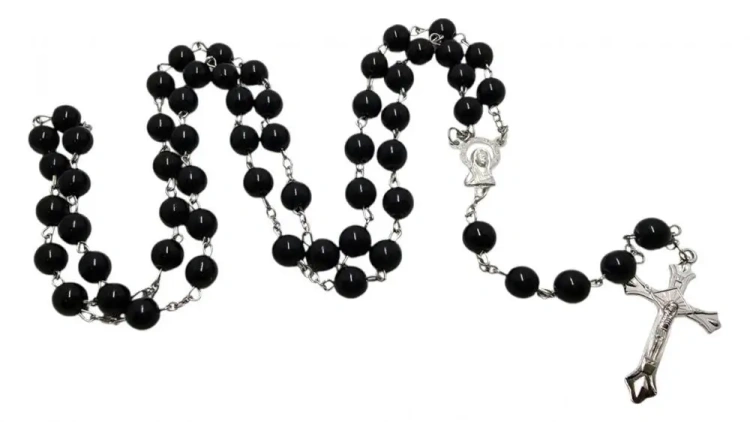 Elegancki, czarny różaniec na łańcuszku