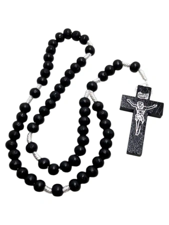 Czarny Różaniec Drewniany na Białym Sznurku.