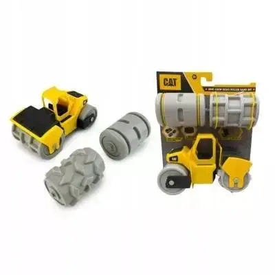 - Walec drogowy: Zabawka wiernie odwzorowuje prawdziwy walec drogowy marki CAT, co dodaje autentyczności podczas zabawy. Walec jest wyposażony w ruchomy bęben, który symuluje proces zagęszczania nawierzchni.