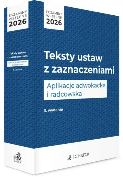 Zbiór wyciągów najważniejszych aktów prawnych niezbędnych do zdania egzaminu wstępnego na aplikację adwokacką i aplikację radcowską w 2026 roku, z przydatnymi oznaczeniami.
