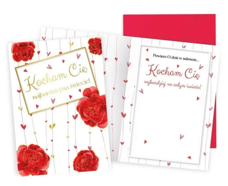 Kartka PR jest zdobiona przynajmniej dwoma rodzajami uszlachetnień - metaliczne lub perłowe folie, brokat, tłoczenie itp.- tyle piękna w takim drobiazgu! Każda kartka Passion Premium ma kolorowe wnętrze z tekstem wyjątkowych życzeń i grafiką, w komplecie jest także dopasowana kolorystycznie koperta. Cechy szczególne: wielkość: B6, 16.6 x 11.7 cm po złożeniu, koperta: dopasowana w zestawie, zdobienia: przynajmniej dwa rodzaje, często więcej - złota, srebrna lub perłowa folia, brokat, tłoczenia, wnętrze kartki: kolorowe, z życzeniami, okazja: Walentynki