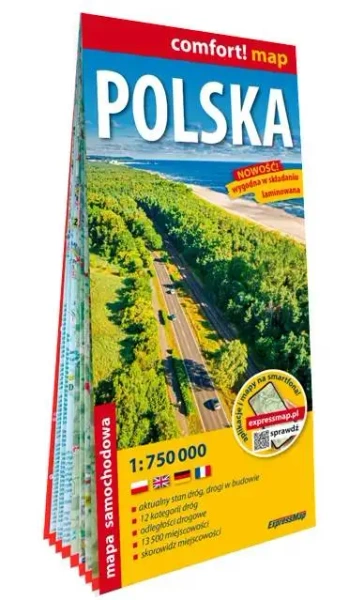 Polska laminowana mapa samochodowa 1:750 000 - praca zbiorowa