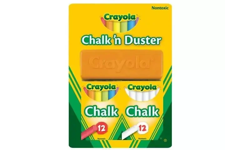 Opakowanie zawiera 12 sztuk białej i 12 sztuk kolorowej kredy, którą można używać na papierze i powierzchniach innych niż tablice kredowe. Zestaw zawiera również gąbkę odpowiednia zarówno do tablic kredowych, jak i białych.
