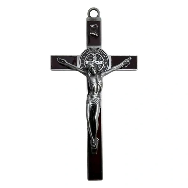 W centralnej części krzyża znajduje się precyzyjnie wykonany medalik Świętego Benedykta, z wizerunkiem oraz symbolicznymi literami modlitwy o ochronę przed złem. To potężne przesłanie sprawia, że krzyż jest nie tylko dekoracją, ale również przedmiotem kultu o wielkim znaczeniu.