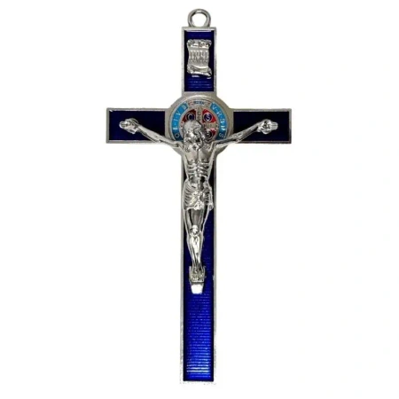 Krzyż granatowy metalowy Benedykta 30cm - Art Sacrum